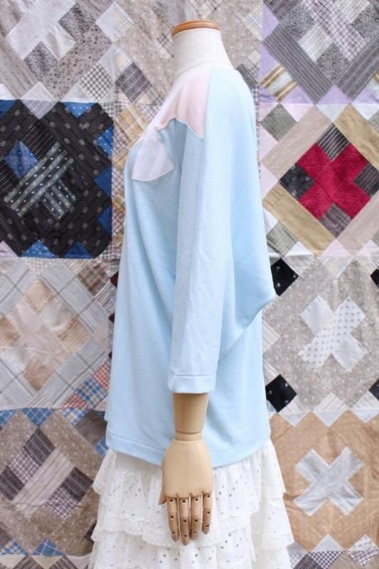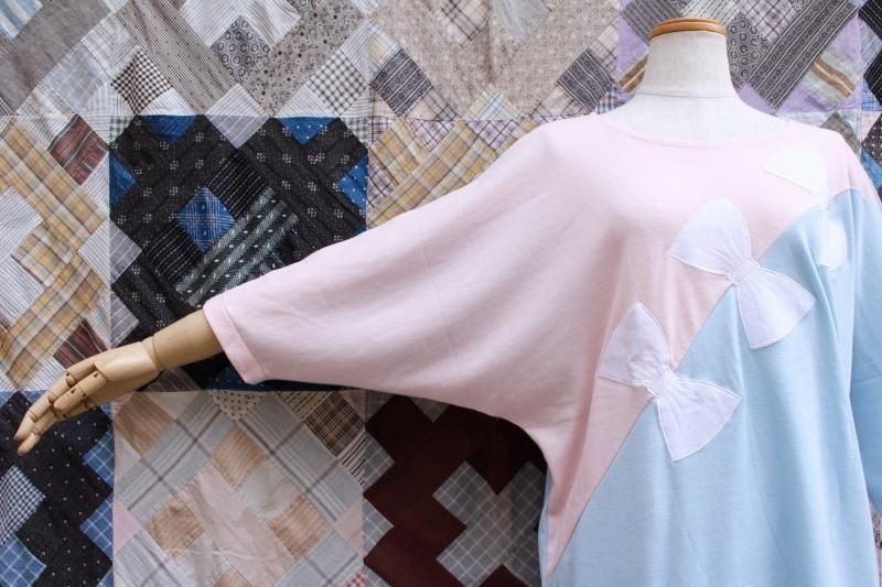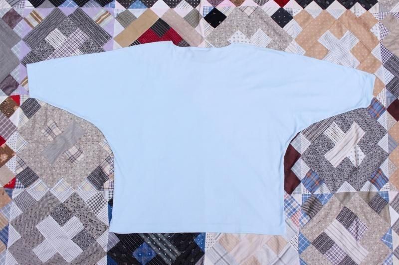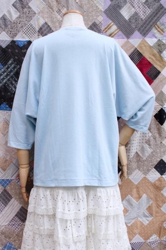 ワイドなクルーネックで、ドルマンスリーブの七分袖です。