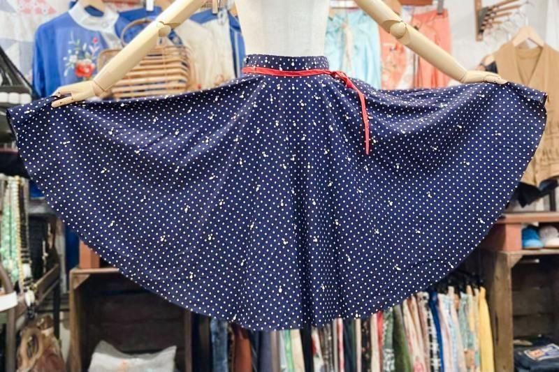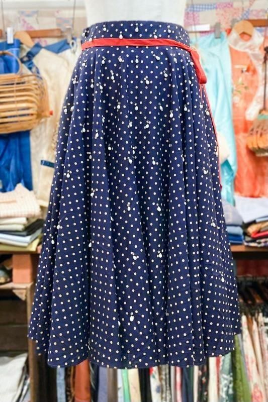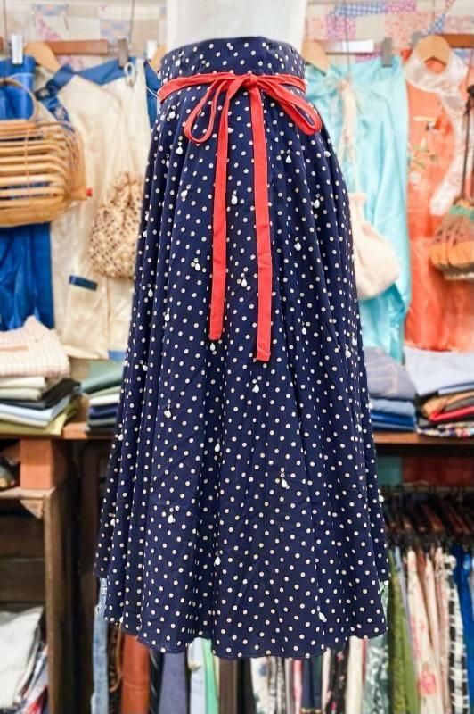 50年代のラインストーンとミルクグラスビーズ装飾のドットサーキュラースカートです。