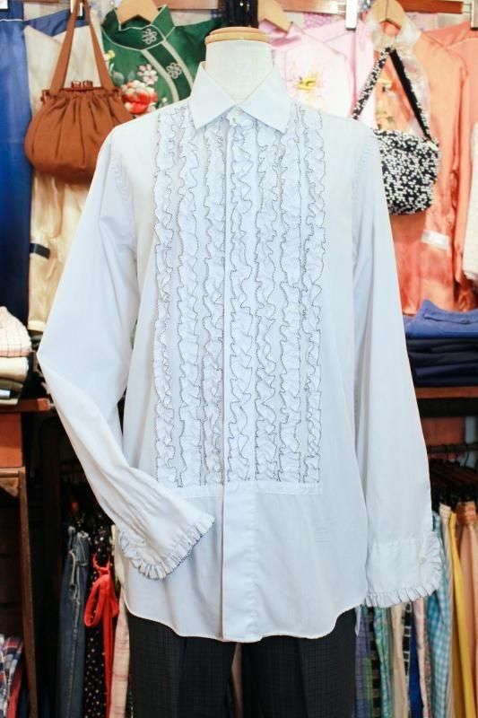 60年代のデッドストックで、ラッフルフロントのタキシードシャツです。