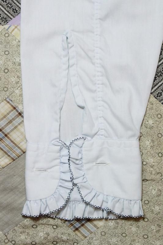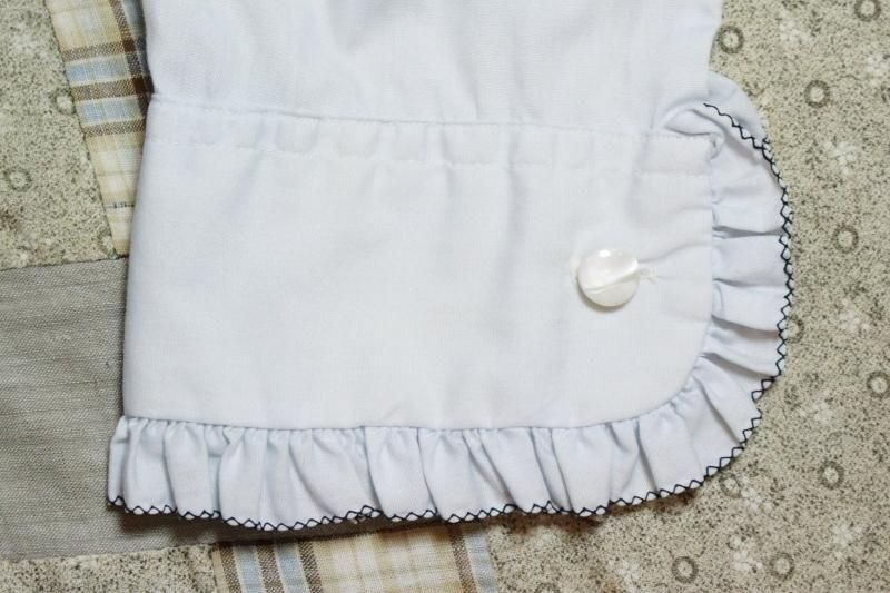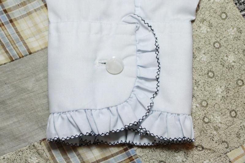 フロントと袖口がフリル状になっており、淡いパステルブルーです。