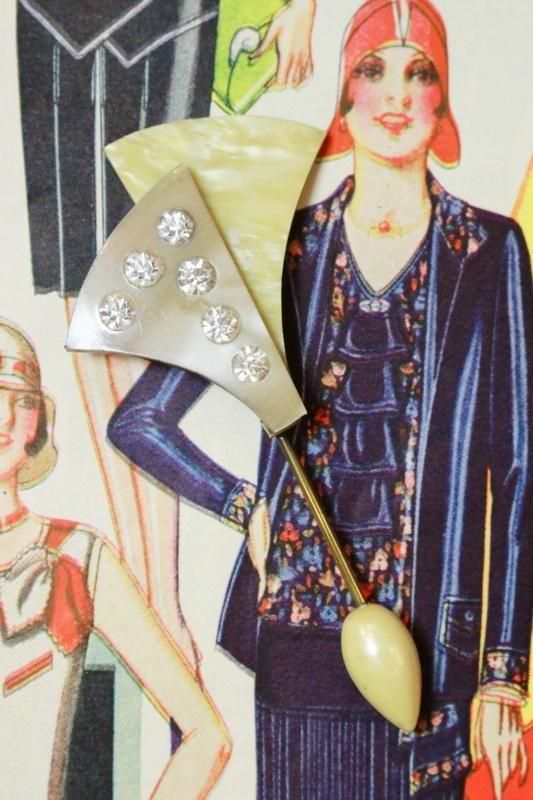 アールデコ期(1920-30年代)のセルロイドとラインストーンのスティックピンです。