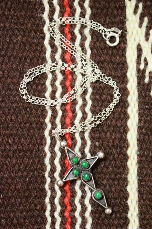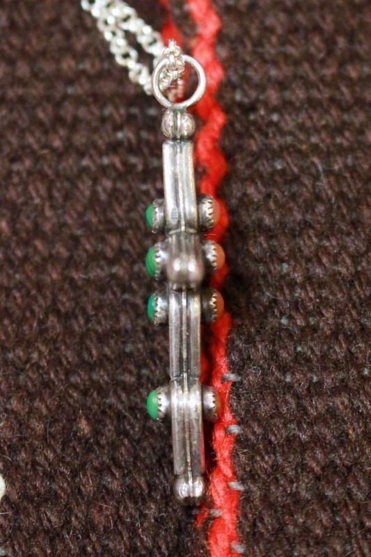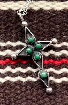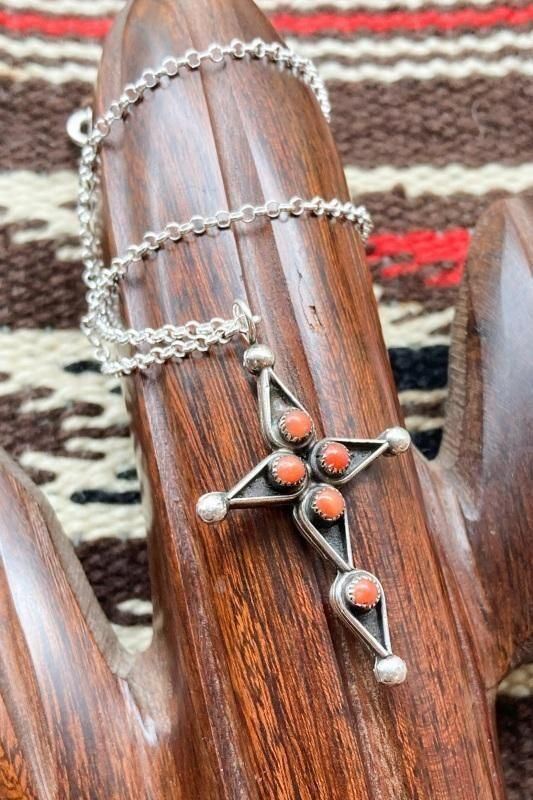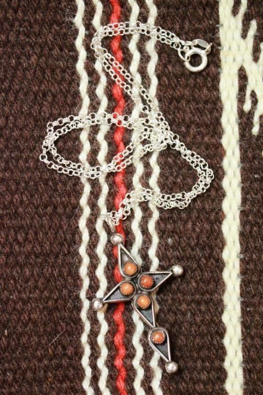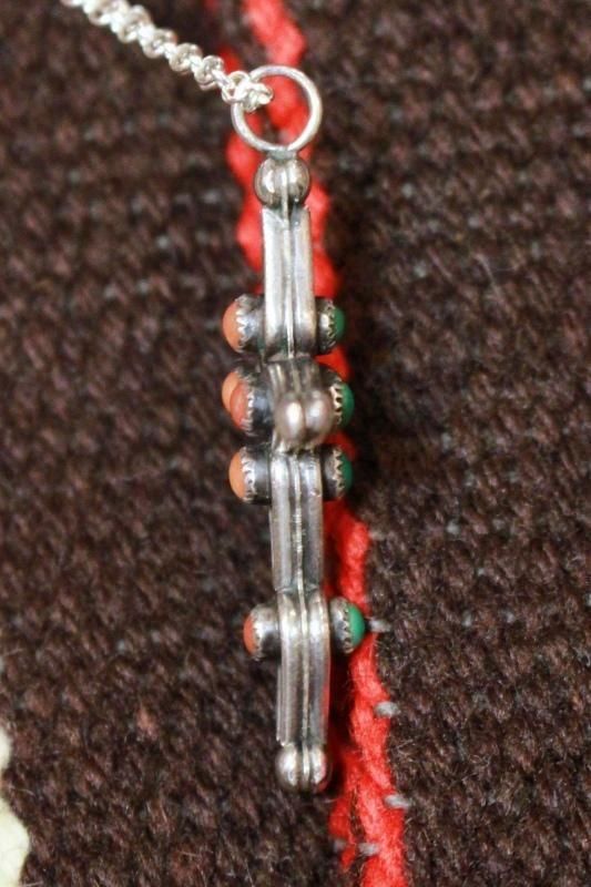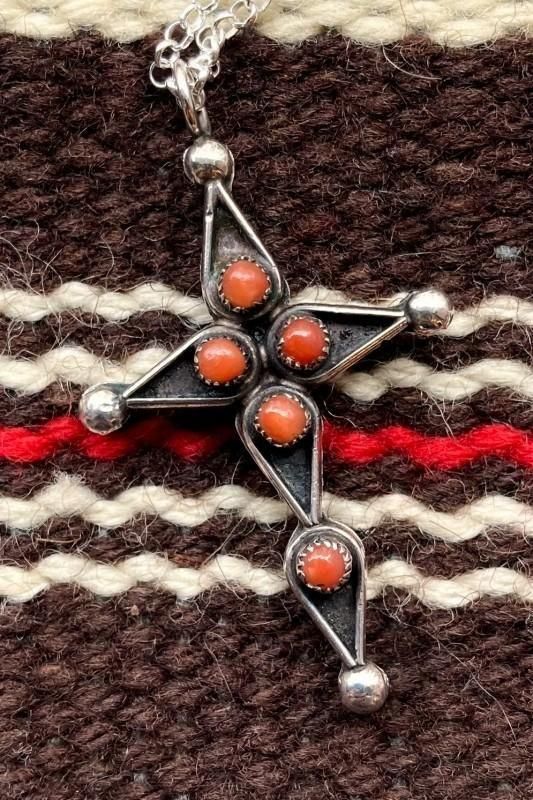 ヴィンテージのズニで、ターコイズとコーラルのリバーシブルシルバーペンダントです。