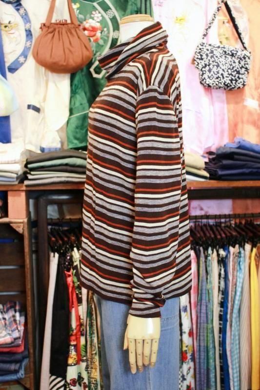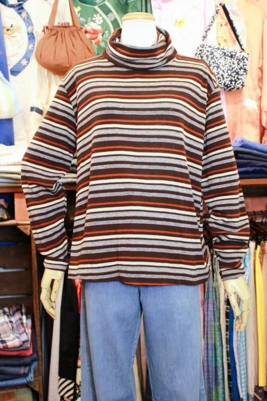 70年代のデッドストックで、マルチボーダーのオフタートルトップスです。