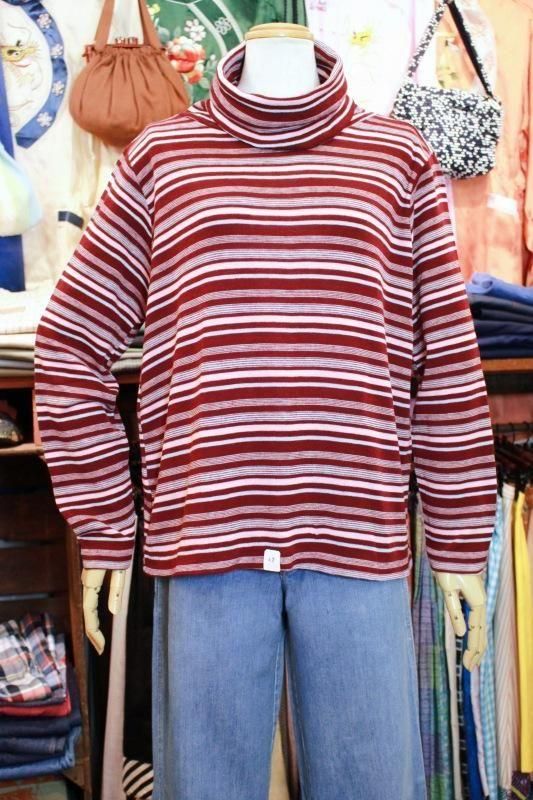 70年代のデッドストックで、マルチボーダーのオフタートルトップスです。
