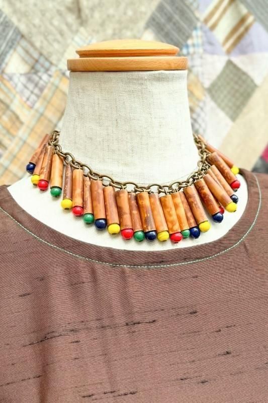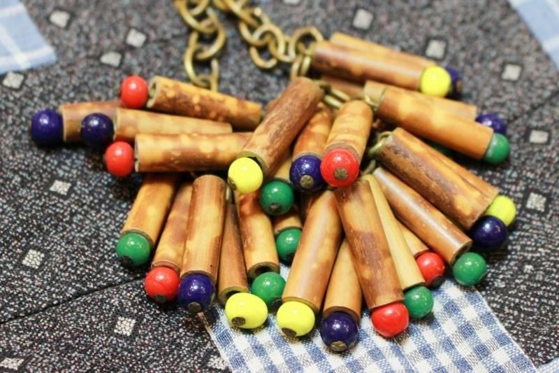 30年代後半-40年代のヴィンテージで、バンブーとグラスビーズのダングルチョーカーネックレスです。