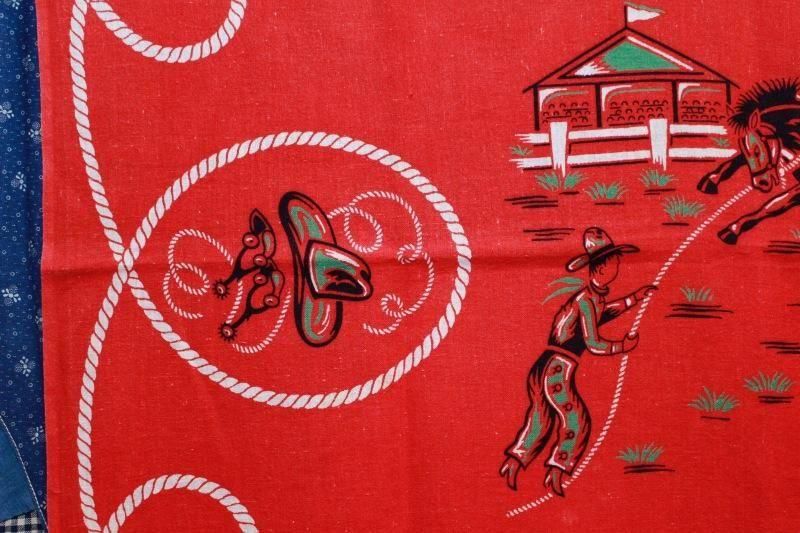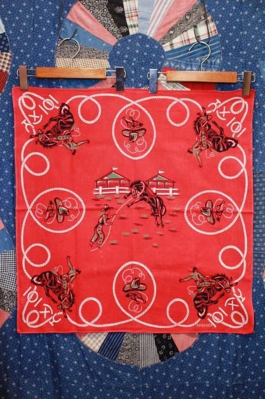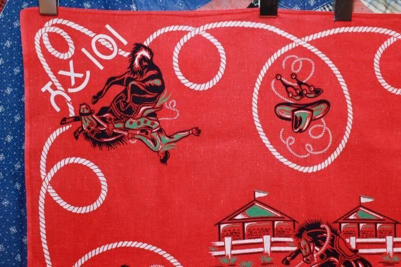 50年代のヴィンテージで、カウボーイ柄の大判のバンダナです。