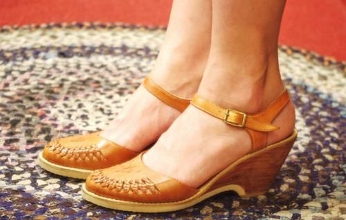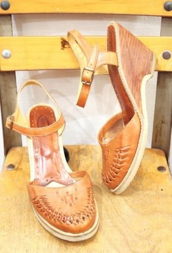 70年代頃のアンクルストラップのウッドウェッジサンダルです。
