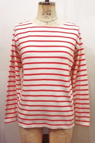 ホワイトにかなりレッド寄りの濃いピンクのボーダーです。